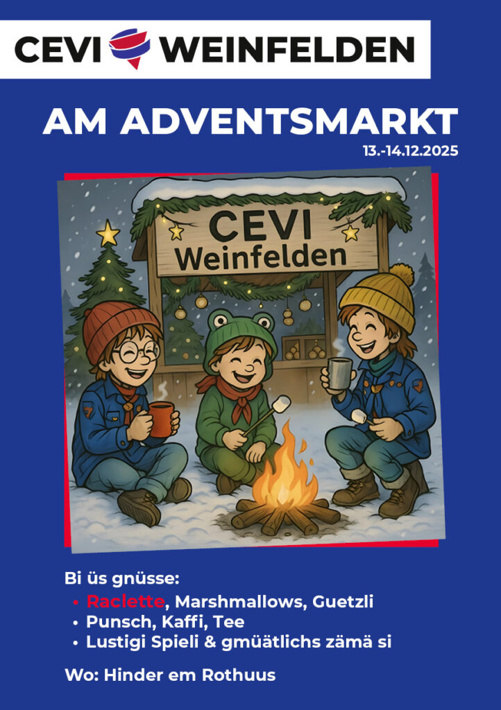 Cevi am AdventsmarktCevi am AdventsmarktBesucht uns gerne an unserem Cevi-Stand hinter dem Rathaus. Es erwarten euch ein... mehr
